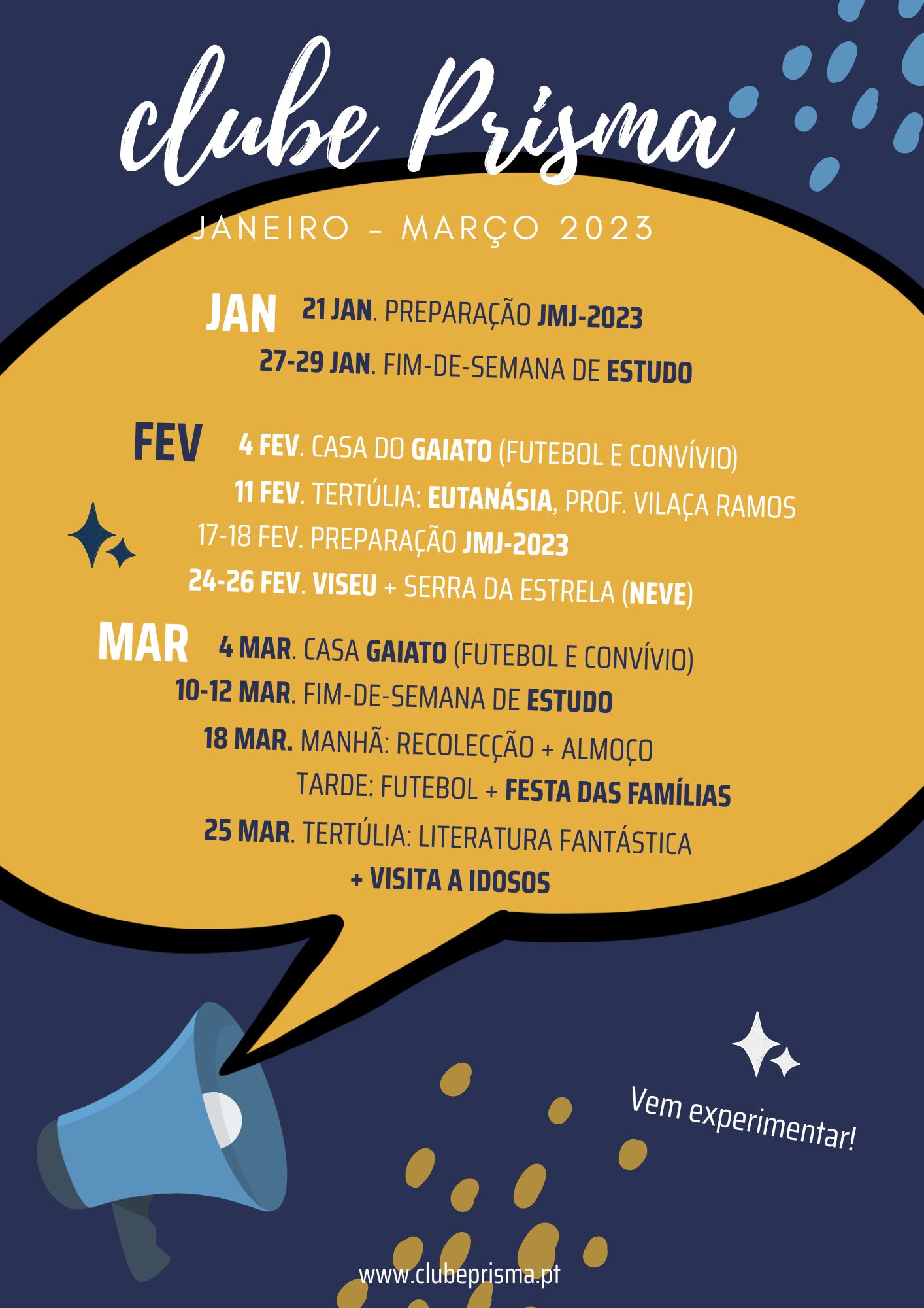 Leia maisApresentamos as actividades do grupo do 4º-8º ano até à Pascoa 2023! As famílias que ainda não conheçam o Clube, podem contactar-nos para marcar uma visita ou simplesmente aparecer no horário de actividades, em qualquer Sábado.